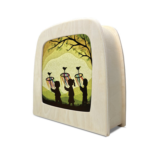 Each silhouette features a different renowned artist and enhances the beauty of their artwork by bringing every line, curvature, color hue, and brush stroke to life. Ignite your little one’s imaginations and instill a love for nature, hearth ‘n home, forest folk, woodland creatures, whimsical fairytales, and far-off lands. Adventures begin at home…
